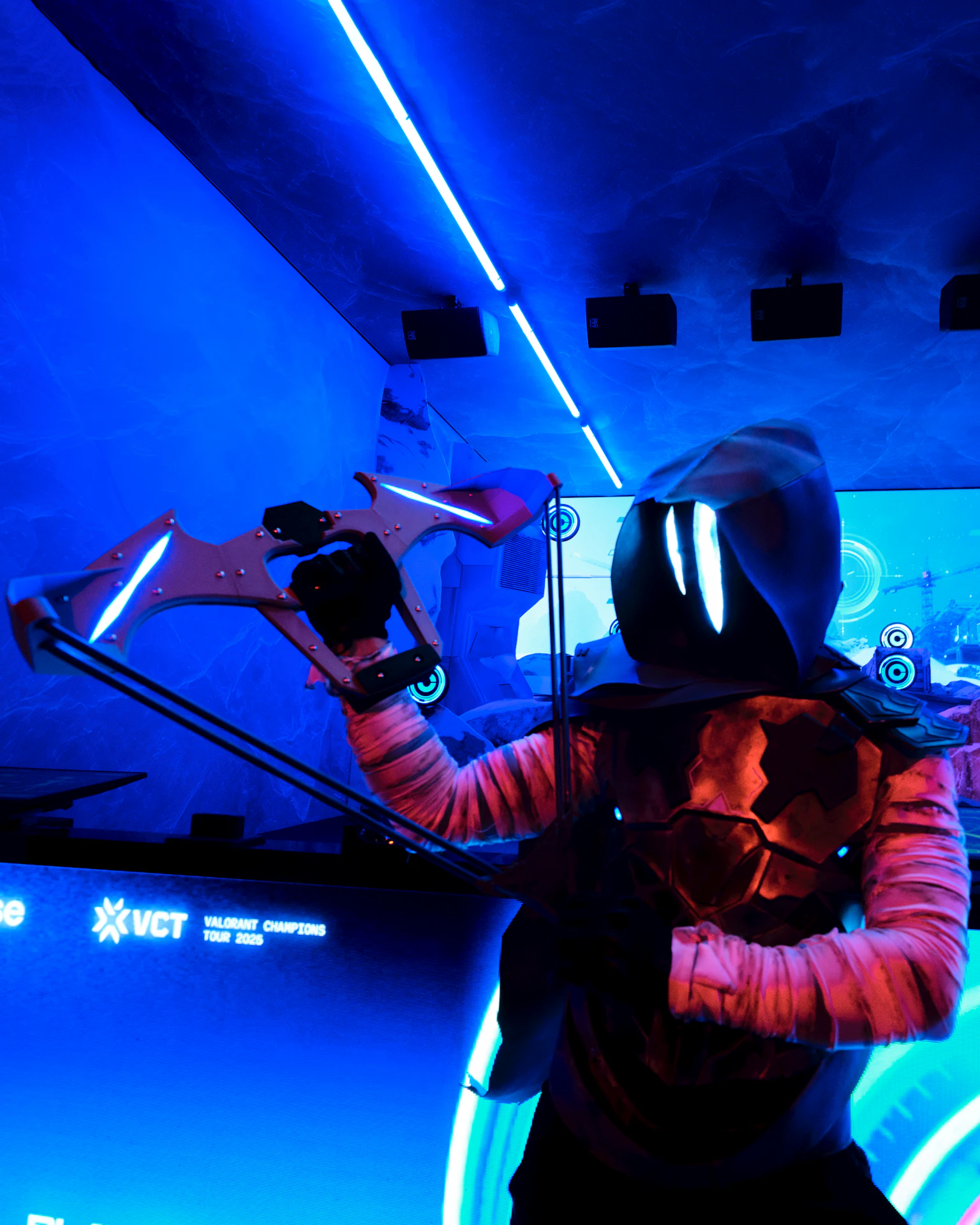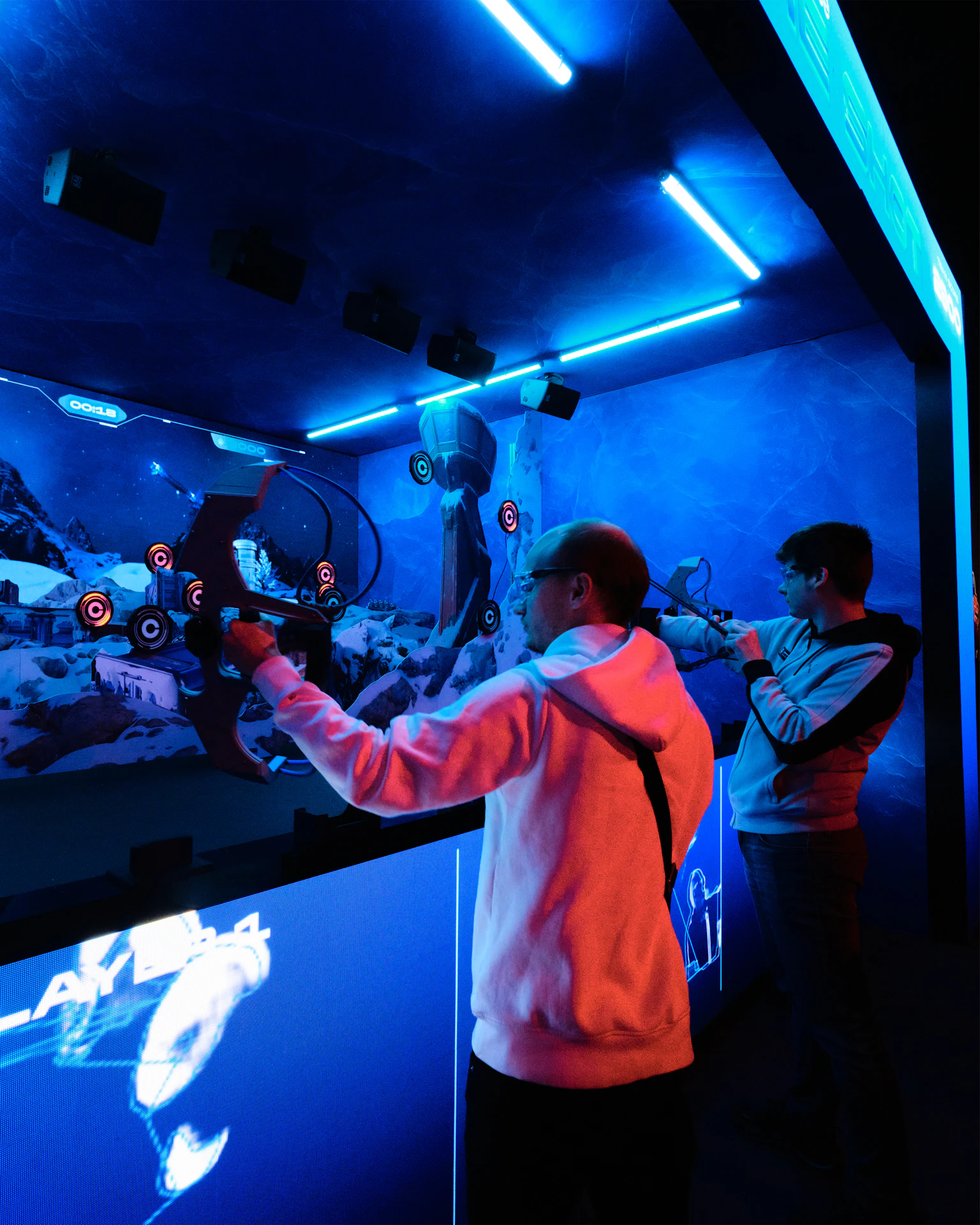 Combining a dynamic pressure target system, reactive audio powered by our proprietary AI system, custom printed bows, and a layered scenic background, we created an immersive experience that rides the fine line of nostalgia and novelty.