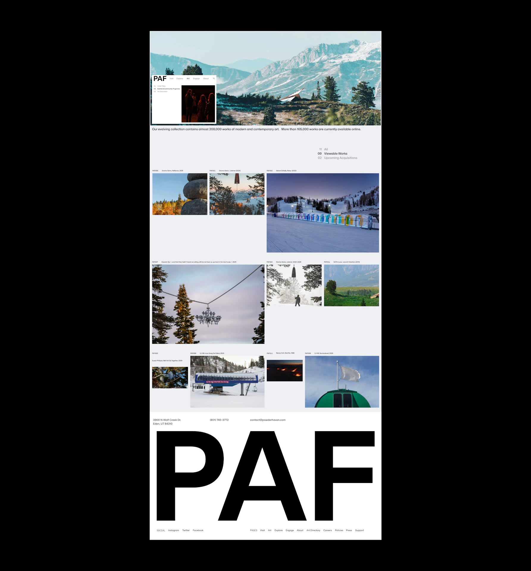 We were able to build on the foundation's unique identity through an exploration in clear navigation that provides context. The Powder Art Foundation gained a digital presence that positions culture as a defining pillar of the Powder Mountain experience. It invites residents and visitors alike to explore, discover, and engage with art as an integral part of life on the mountain.