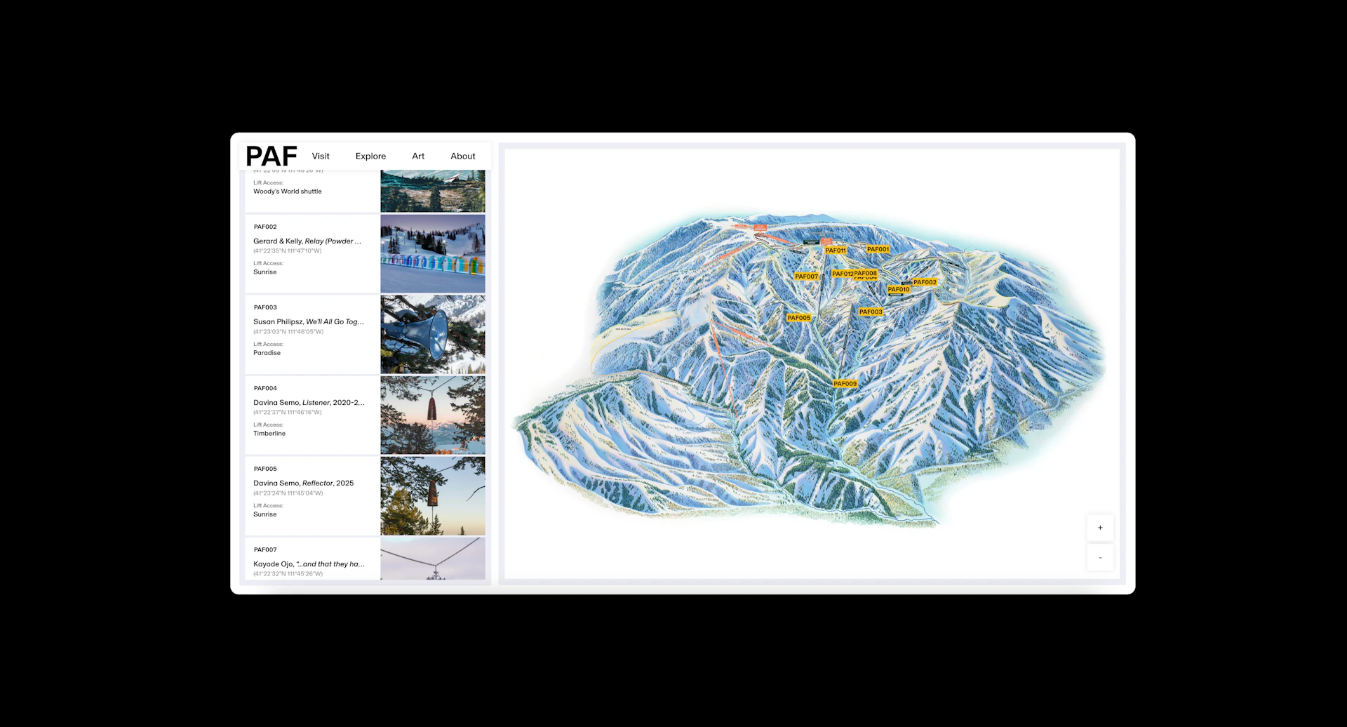 Excetera saw an opportunity to transform the web journey into an access point for the immersive artworks embedded across Powder Mountain’s 12,000 acres. The experience provides residents and prospective visitors with cultural context, intuitive navigation, and spatial clarity, while preserving the primacy of the landscape and the artists’ vision.
