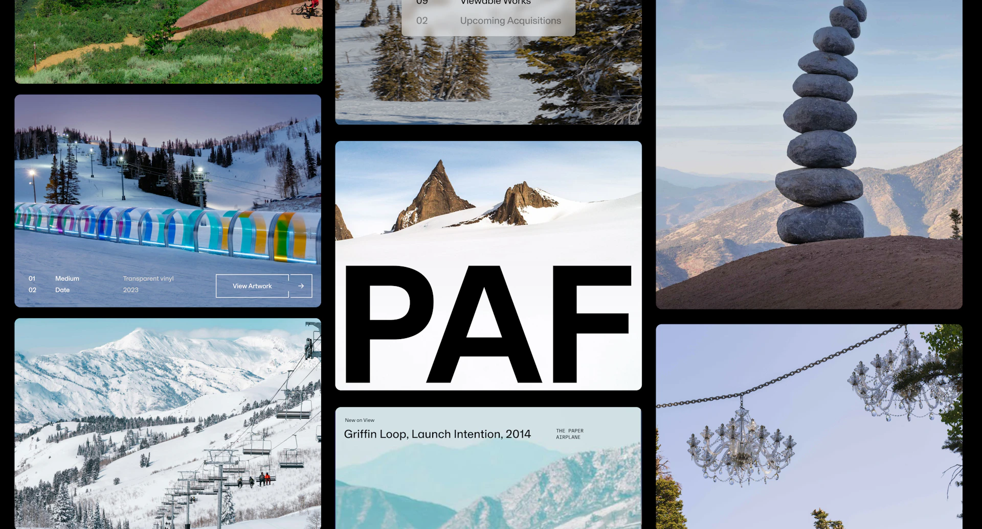 We built a bespoke navigation system designed to spotlight the collection across a distributed digital exhibition. Fluid navigation components were designed to contextualize, not decorate. Inspired by PAF’s ethos of active viewing and discovery across a living exhibition site, the interface guides visitors through the collection with light-touch motion, and a transparent housing architecture.
