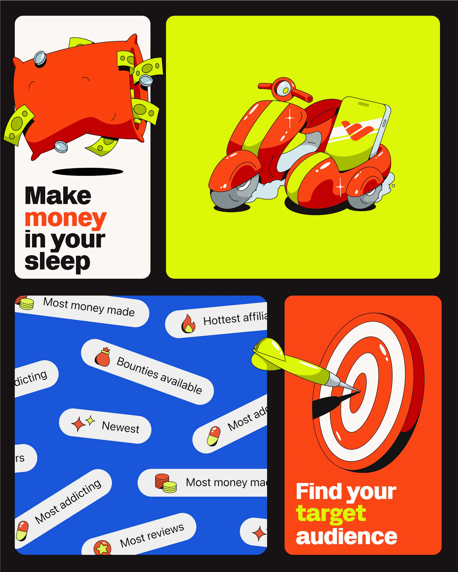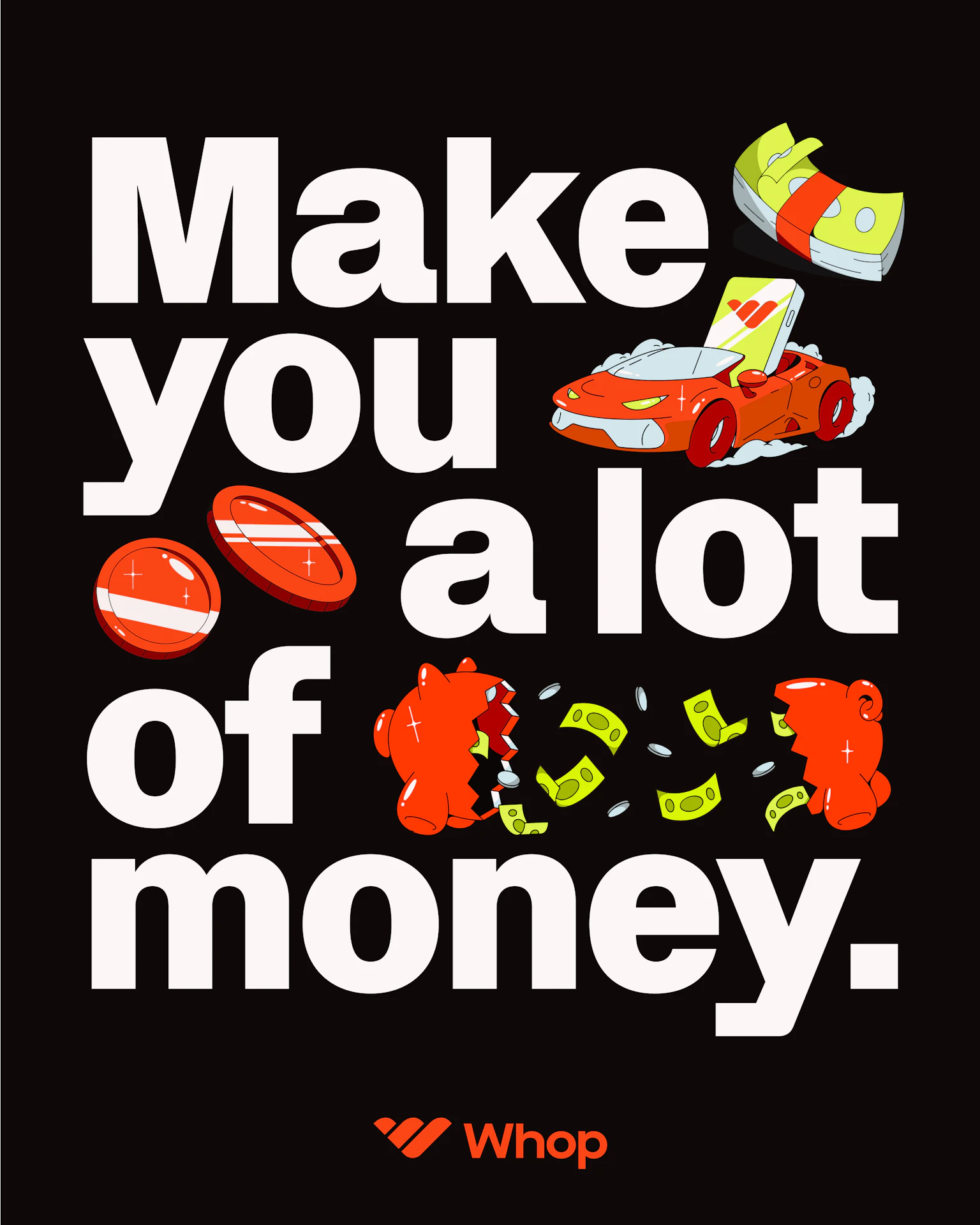 A platform built for digital creators, Whop had found huge success in product-market fit early on, reaching 500M total sales across all of its users in 2024. But the brand had its issues—resonating with a disparate hodgepodge of finance bros, sports betting speculators, and self-help gurus. In order to reach its next chapter of growth, Whop would need to develop a cohesive brand and maintain consistent creative execution throughout its communications so that the diverse world of creators could see themselves in it.